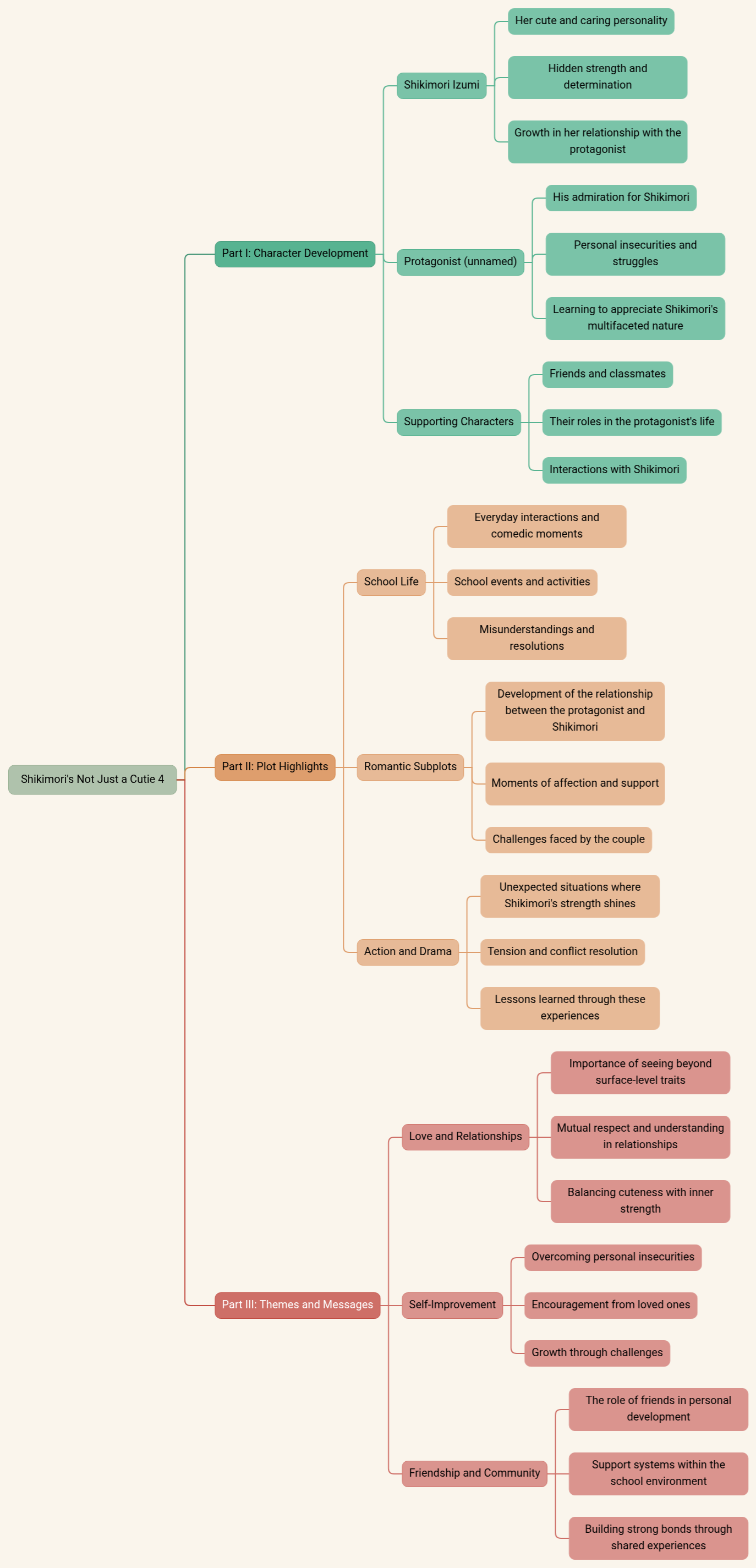 - Development of the relationship between the protagonist and Shikimori