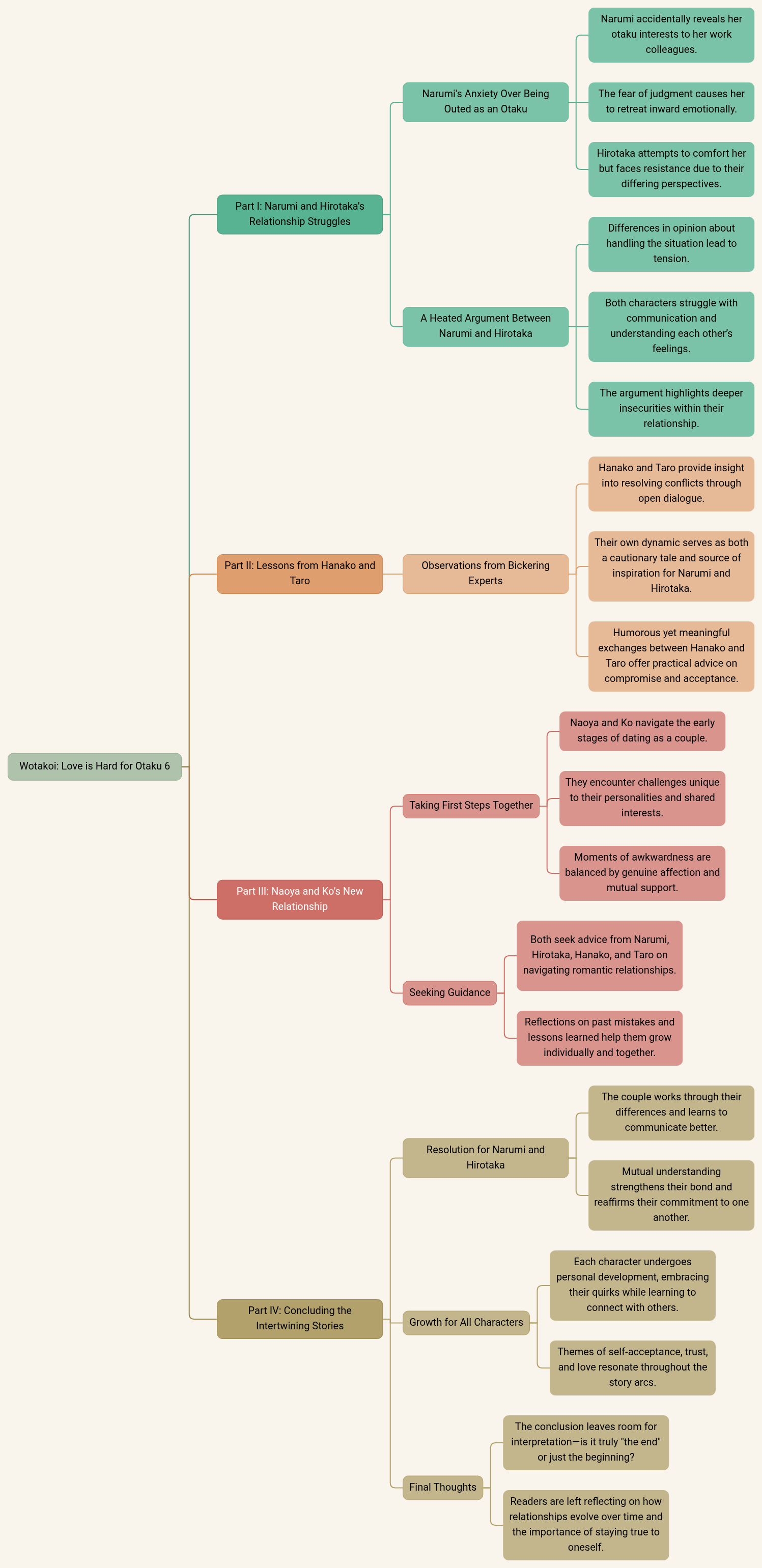 - Both seek advice from Narumi, Hirotaka, Hanako, and Taro on navigating romantic relationships.