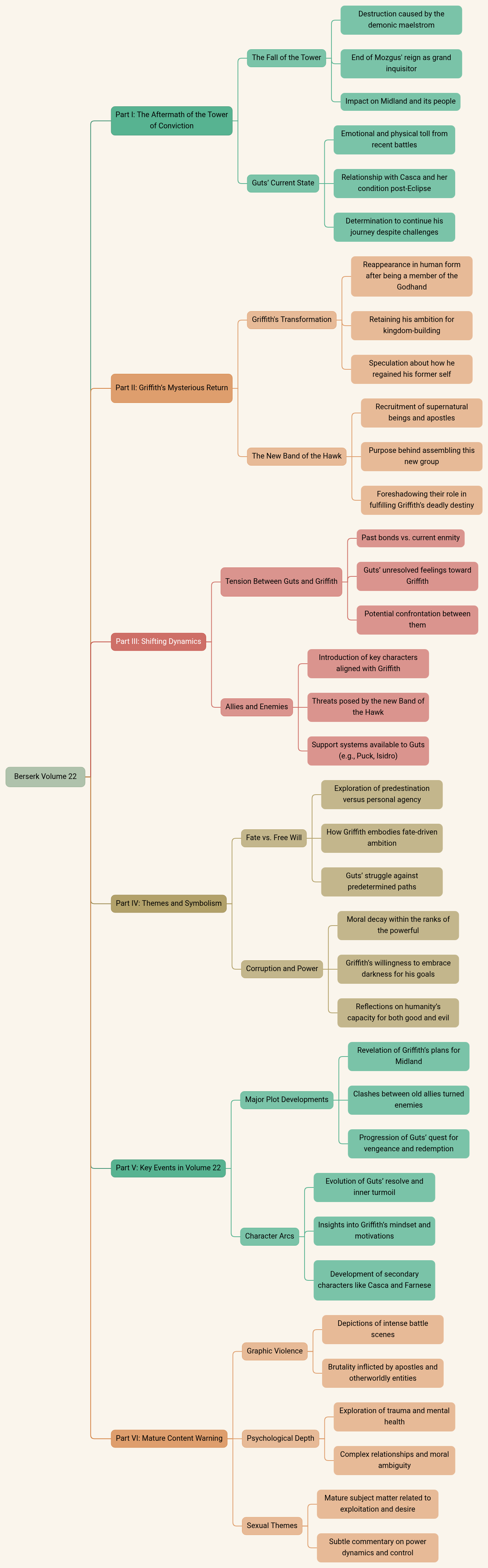 - Progression of Guts’ quest for vengeance and redemption