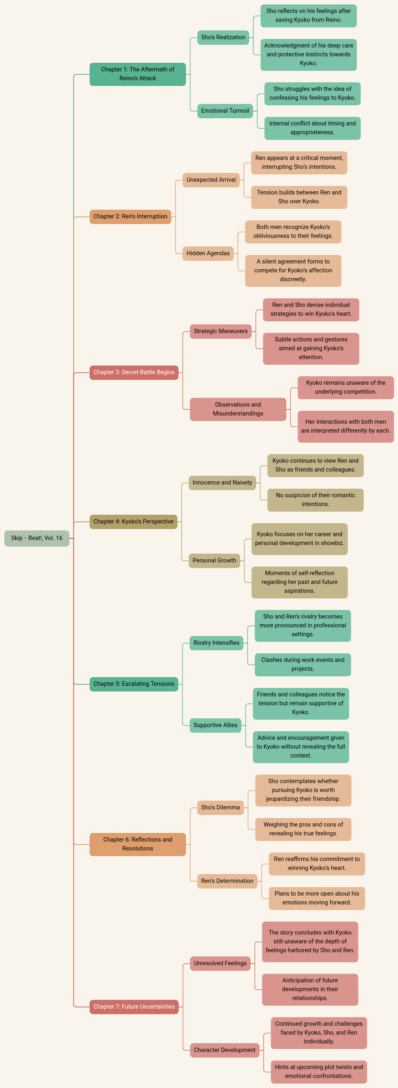- The story concludes with Kyoko still unaware of the depth of feelings harbored by Sho and Ren.